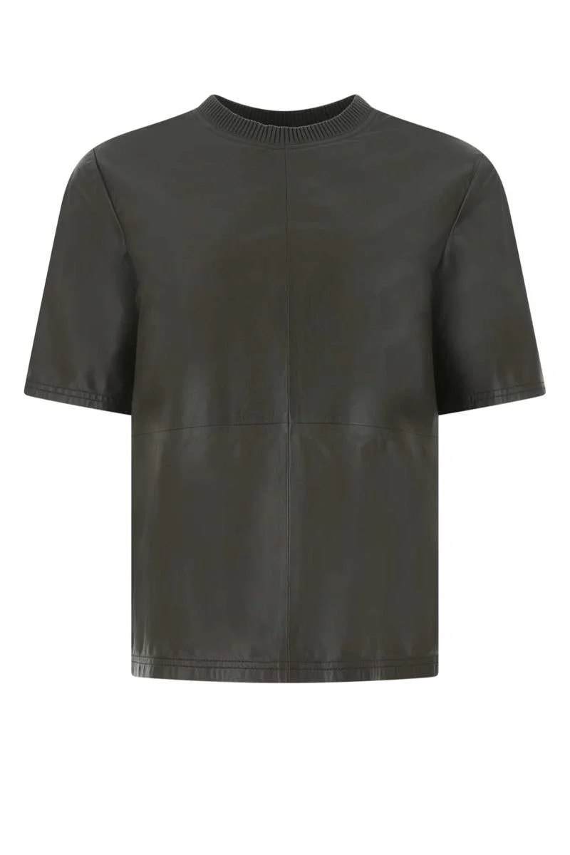 Dark brown leather t-shirt Gender: Women Material: EXTERIOR: 100% BOVINE LEATHER LINING: 100% COTTON Color: BROWN Made in: US Product ID: PS22WLS006 BROWN *Import tax/duty will be calculated at checkout (If applicable)