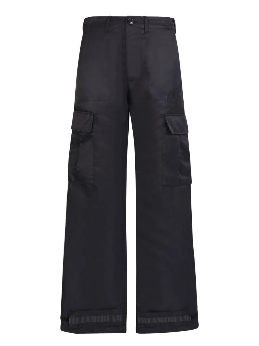 Parachute trousers with cargo pockets and embroidered logo by Amiri Regular waist. Belt loops. Front button fastening. Embroidered logo on the side. Cargo pockets on the side. Two rear flap pocket. Color: black Material: 100% Cotton Product code: 178911 Brand code: PF22MPF006 NSA 001 Gender: Men Material: 100% COTTON Color: Black Made in: Imported Product ID: PF22MPF006 NSA 001 *Import tax/duty will be calculated at checkout (If applicable)