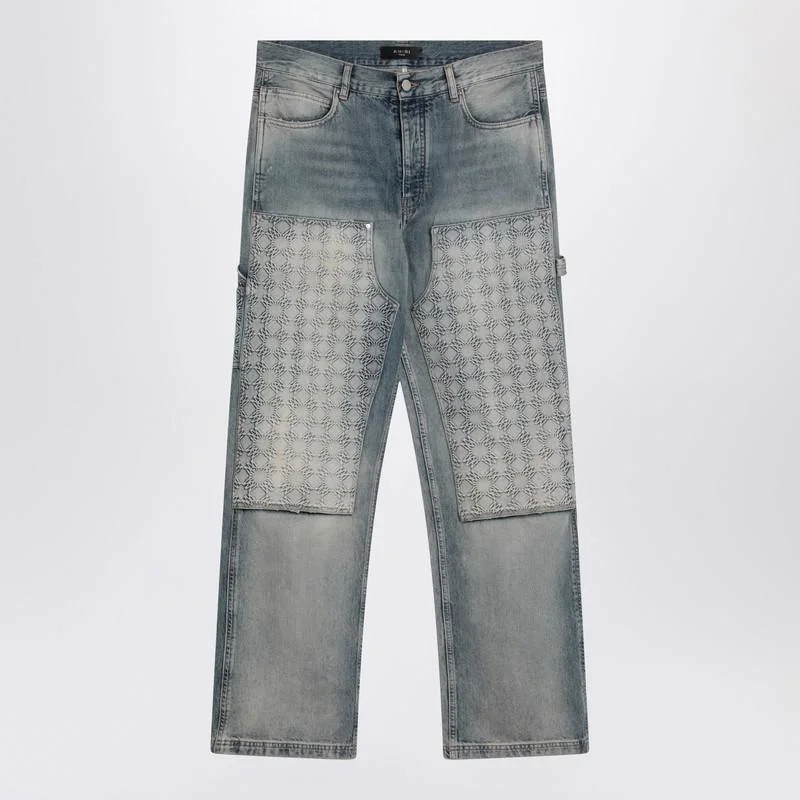 Amiri jeans in light blue washed cotton denim, featuring five classic pockets, belt loops, front closure with zip and button, front and back panels decorated with monogram print, hammer loop, and logo patch on the back. Gender: Men Material: Fabric I: 100% Cotton / Pocket lining: 65% Polyester - 35% Cotton Color: BLUE Made in: Italy Product ID: AMDNGH1055CO/Q_AMIRI-406 *Import tax/duty will be calculated at checkout (If applicable)