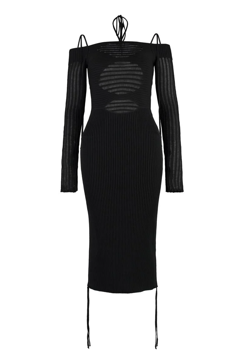 Ribbed knit dress Adjustable straps Front cut-out detail 80% Viscose, 1% Elastane, 10% Polyester, 9% Polyamide Gender: Women Material: VISCOSE Color: Black Made in: IT Product ID: ADSS23DR15947268_0473 *Import tax/duty will be calculated at checkout (If applicable)