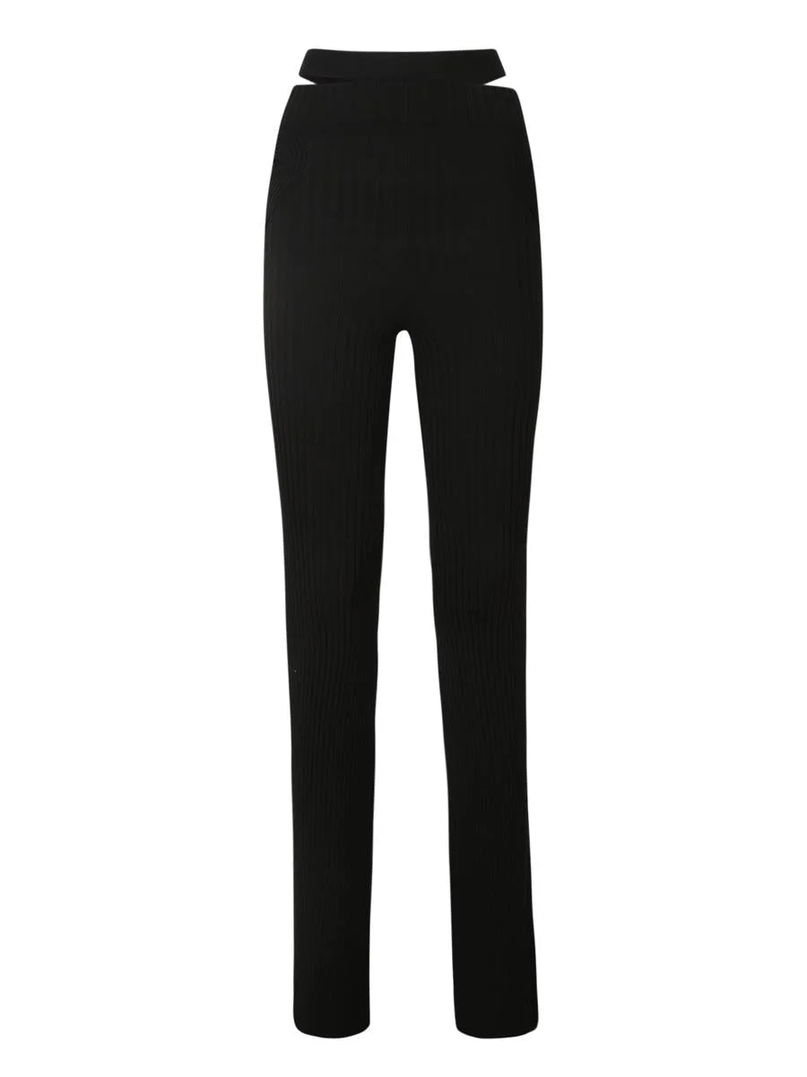 Ribbed knit slim trousers High waist Ribbed knit Cut-out detail Slim cut Color: black Slim fit 80% Viscose, 10% Polyester, 9% Polyamide, 1%Elastane Gender: WOMEN Color: BLACK Made in: IMPORTED Product ID: PA0403 1473 004 *Import tax/duty will be calculated at checkout (If applicable)