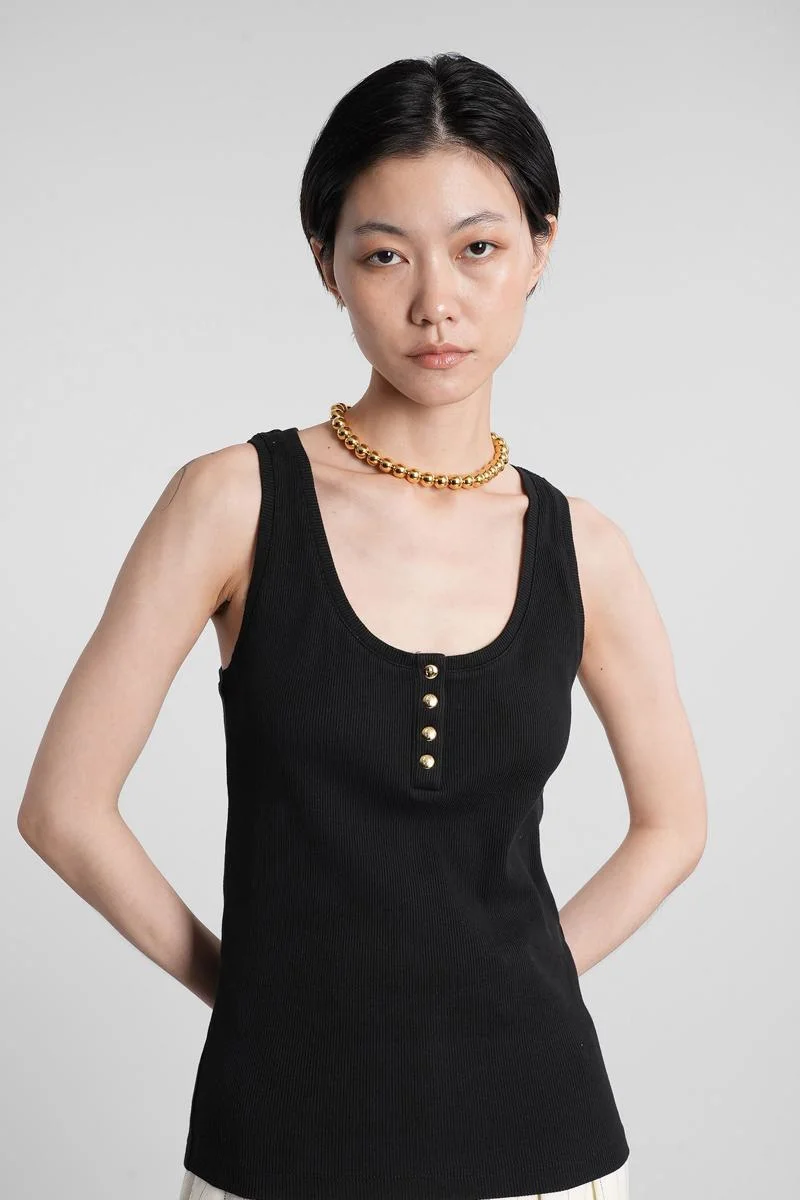 Alessia tank Top in black cotton, round neck, front buttons detail, sleeveless, ribbed knit, 100% cotton, Made in Turkey Gender: Women Material: COTTON Color: Black Made in: Imported Product ID: 415839_A-08-10316 *Import tax/duty will be calculated at checkout (If applicable)