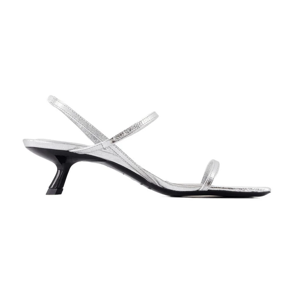 Colours: SILVER - IVORY Material: smooth goatskin leather smooth goatskin leather Toe shape: square open Fit: True to size - Sizing: European Gender: Women Material: 100% GOAT LEATHER Color: SILVER Made in: PT Product ID: A-14-10684 *Import tax/duty will be calculated at checkout (If applicable)