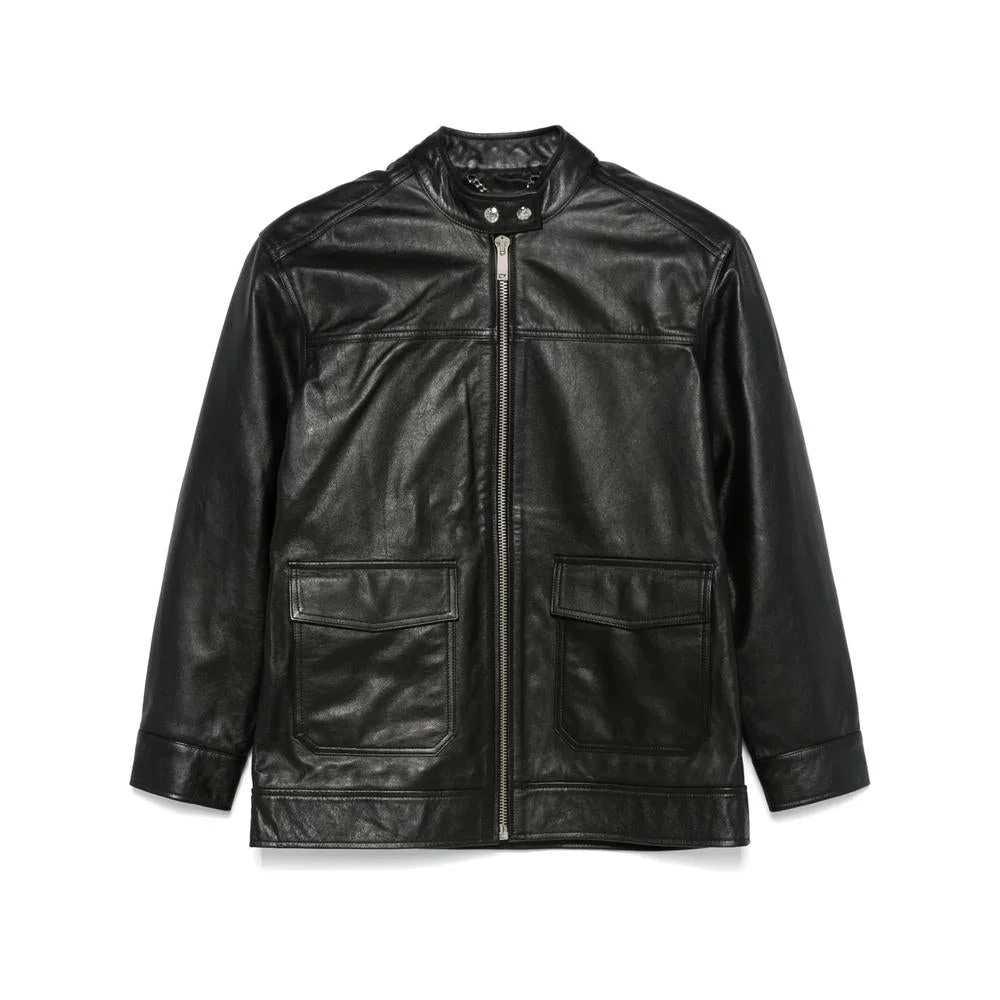 Black calf leather smooth grain front zip fastening press-stud fastening collar long sleeves with press-stud fastening cuffs two front flap pockets full lining straight hem Gender: Women Material: OUTER COMPOSITION CALF LEATHER: 100.0%, LINING COMPOSITION POLYESTER: 100.0% Color: Black Made in: TR Product ID: A-01-10189 000 *Import tax/duty will be calculated at checkout (If applicable)