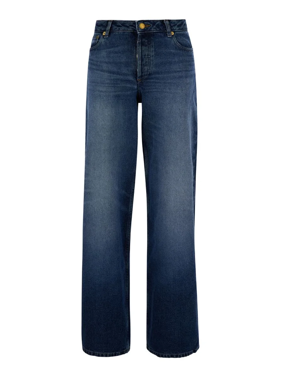 A.P.C. 'ELISABETH' BLUE STRAIGHT JEANS WITH BRANDED BUTTON IN DENIM WOMAN