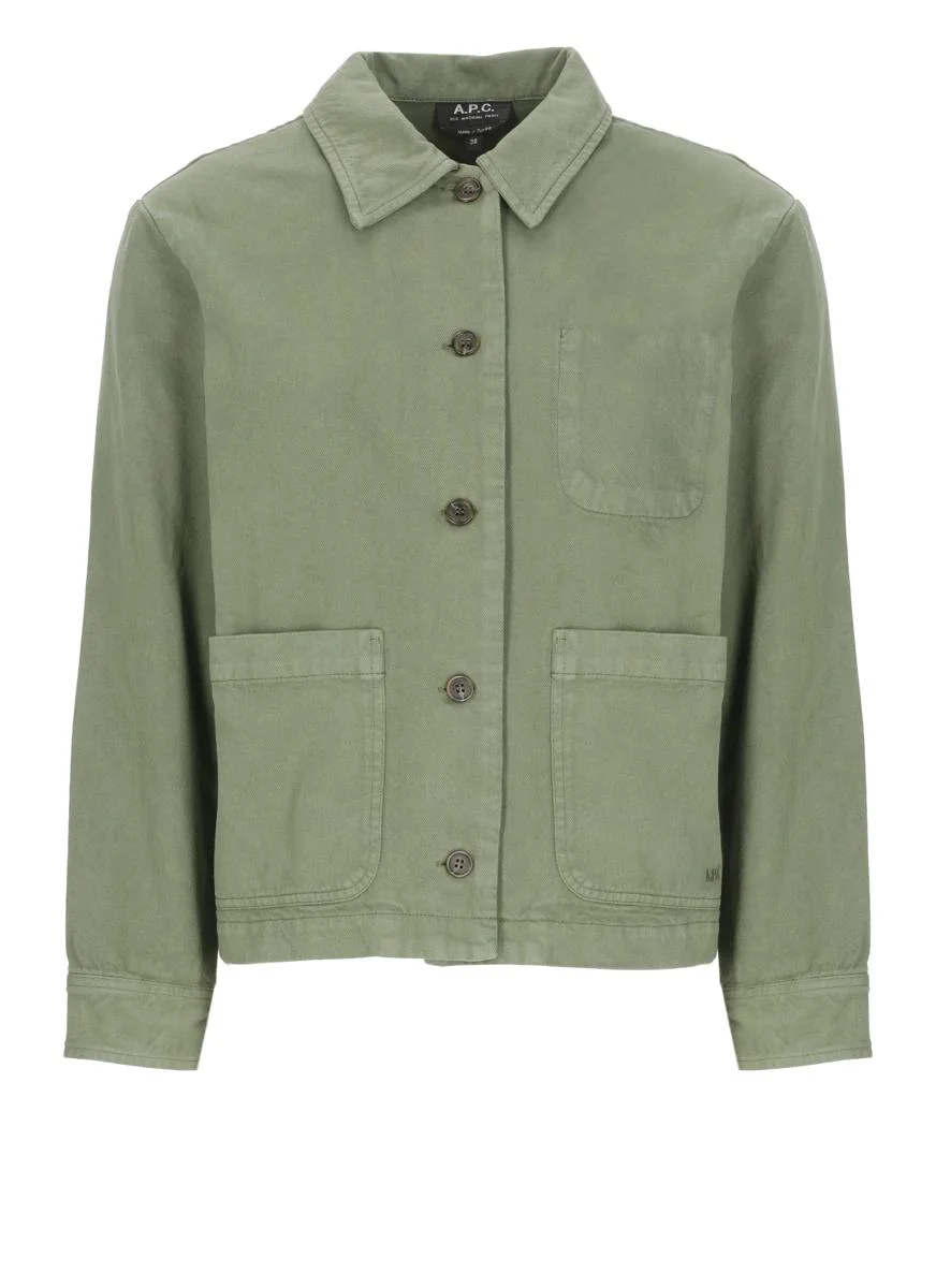 - Green A.P.C. cotton shirt for woman - Colla - Long sleeves with buttons - Front buttons fastening - Two front welt pockets Model's height is 179 cm and she wears a size 36 Gender: Women Material: 100% COTTON Color: GREEN Made in: Imported Product ID: COGZV-F02937KAA *Import tax/duty will be calculated at checkout (If applicable)