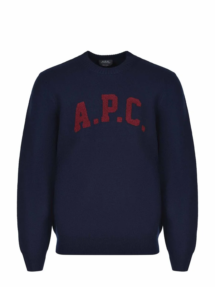 A.P.C "Jay" sweater made of dark blue wool. Ribbed crew neck. Long sleeves. Contrasting A.P.C logo lettering on the chest. Gender: Men Material: WOOL Color: BLUE Made in: Imported Product ID: WVBDK-H23458IAK *Import tax/duty will be calculated at checkout (If applicable)