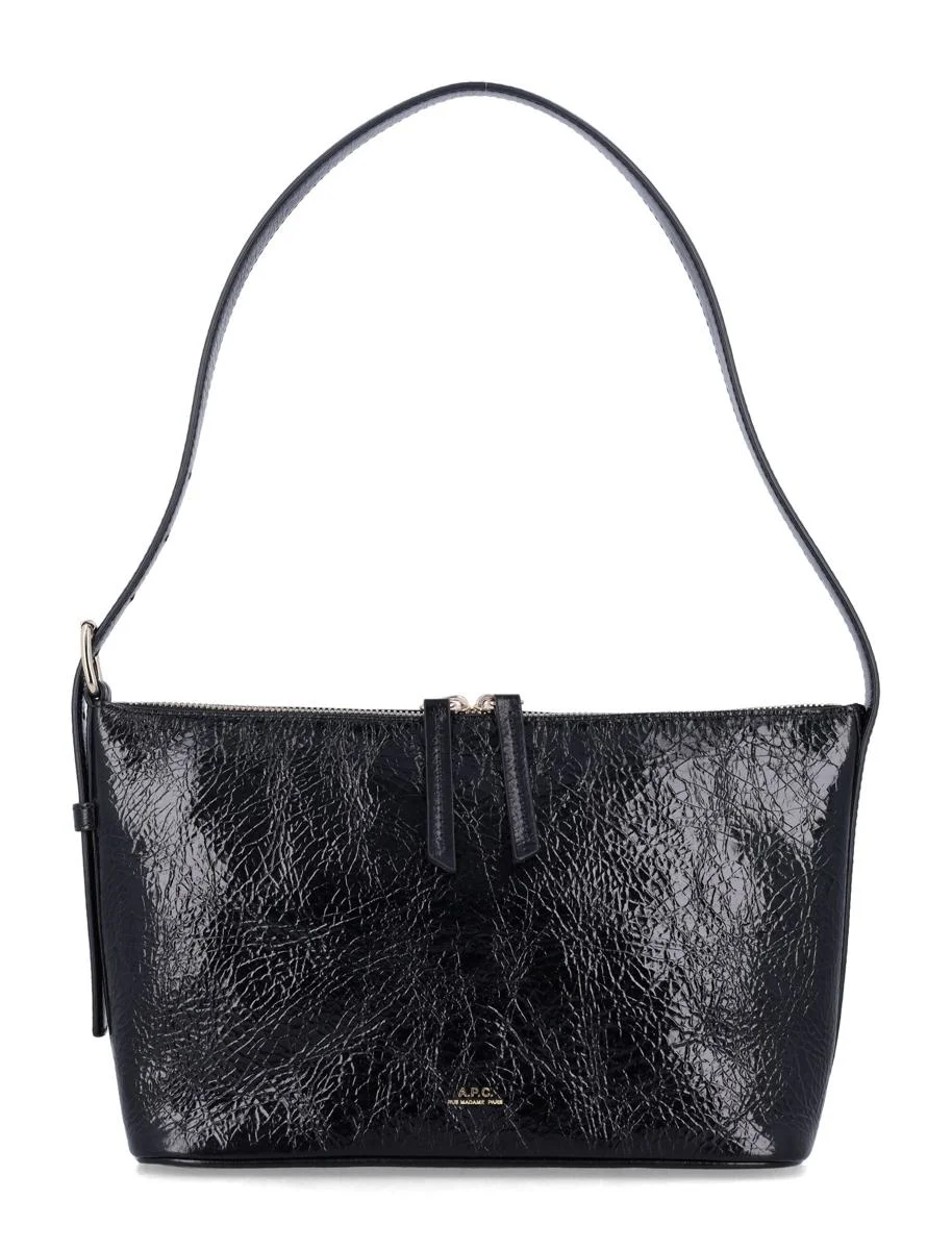 Crafted in glossy crinkle leather, the A.P.C. Vera Shoulder Bag combines minimalist elegance with everyday functionality. The structured design is enhanced by a wide adjustable strap with gold-tone buckle, allowing it to be carried by hand or worn on the shoulder. A double zip closure, interior pocket, and cotton lining ensure practicality, while the embossed gold-tone logo adds a refined finishing touch. Adjustable strap with gold-tone buckle Two-way zip closure with leather pullers Interior flat pocket for essentials Embossed gold-tone “A.P.C. Rue Madame Paris” logo Cotton lining for a refined finish Height: 17 cm Width: 28 cm Depth: 10 cm Gender: Women Material: 100% CALF LEATHER Color: Black Made in: Imported Product ID: 25AF61974PXCCK#LZZ *Import tax/duty will be calculated at checkout (If applicable)