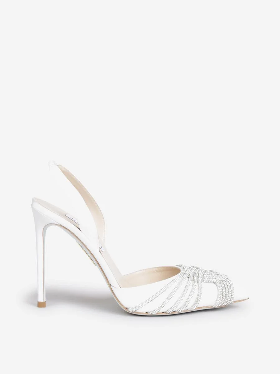 Sandals by Aquazzura• Tacones• Sandals• Made of silk satin• Detail of brilliants• High stiletto heel • Heel height: 10.5 cm• A slingback strap• Padded leather insole• Leather soleLeather insole with 'Aquazzura Firenze' labelMade in ItaliaSilk and Leather Gender: Women Material: SILK AND LEATHER Color: WHITE Made in: Italy Product ID: GASHIGBR-SAT_FFFWHITE *Import tax/duty will be calculated at checkout (If applicable)