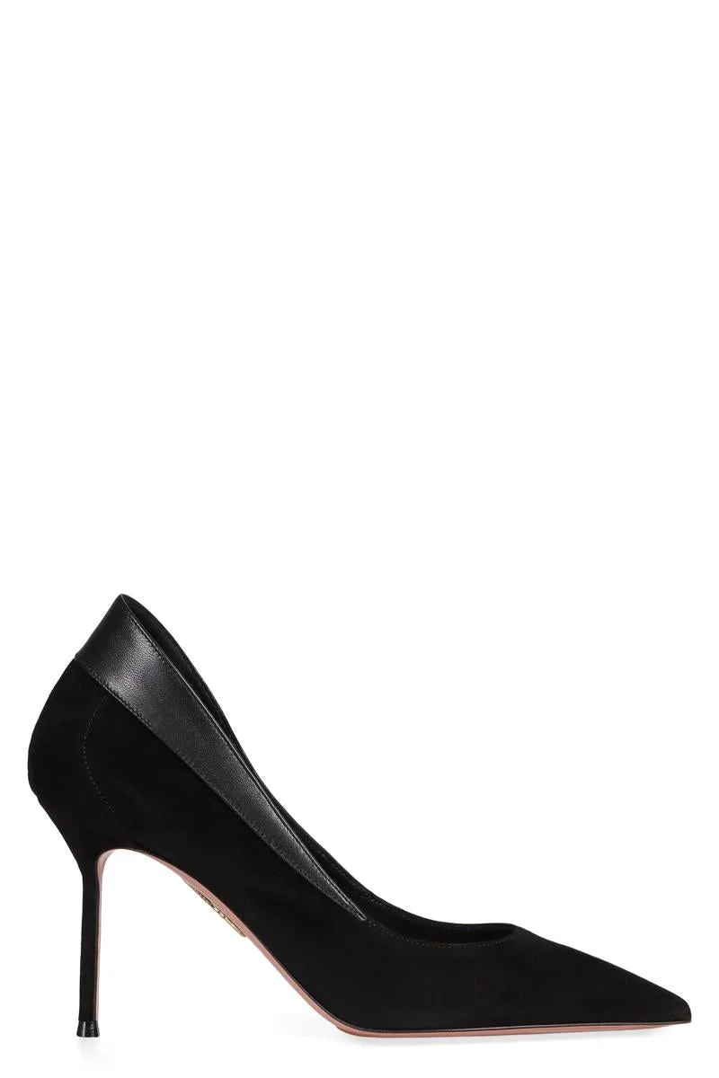Guanto suede pumps Elegant black pointy-toe pumps with tone-on-tone leather detail. Stiletto high heels. Heel height: 8.5 cm. 100% Chamois Gender: Women Material: CHAMOIS Color: Black Made in: Italy Product ID: GTOMIDP0SAA_000 *Import tax/duty will be calculated at checkout (If applicable)