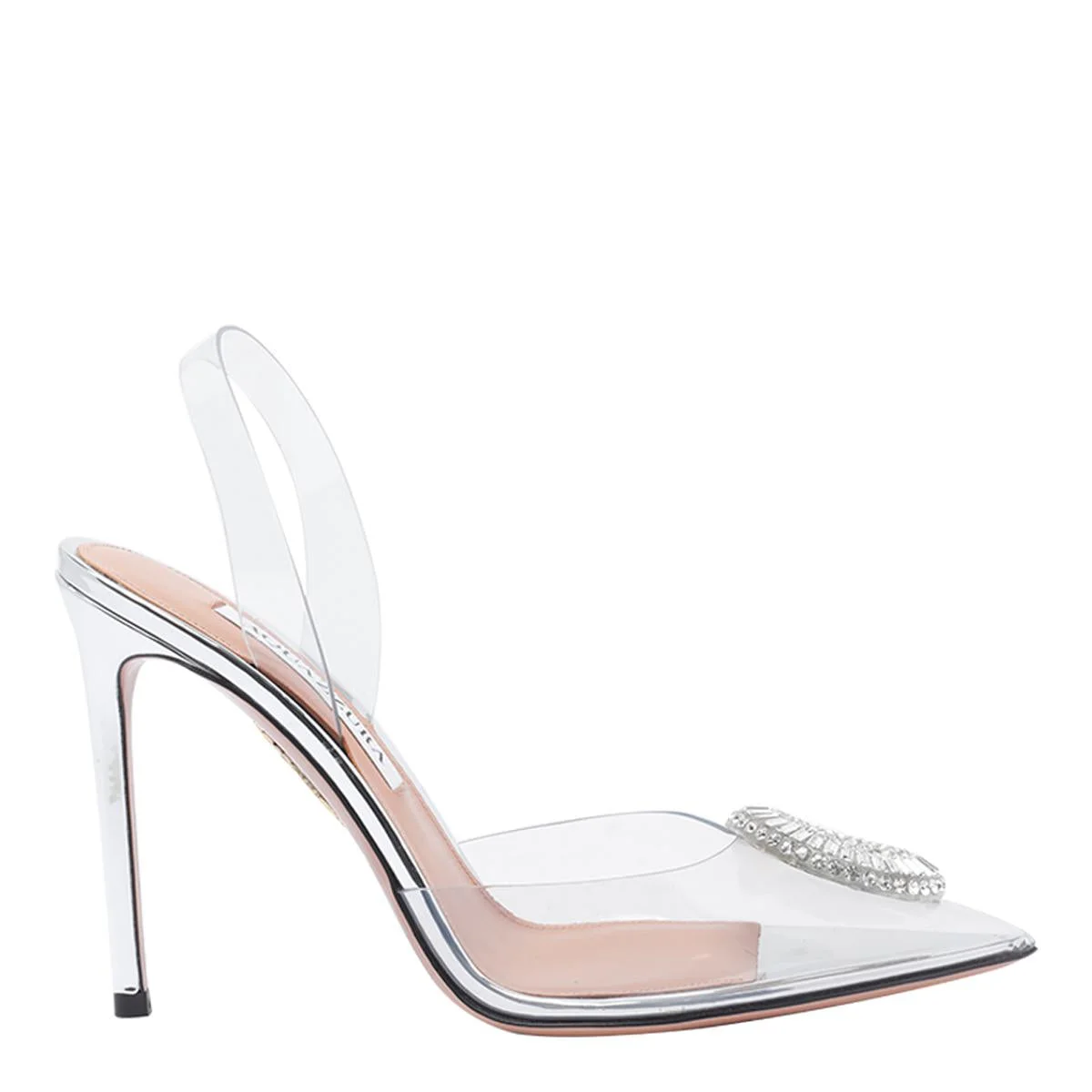 Aquazzura Transparent Crystal Plexi Pumps, Pointed Toe, Transparent Effect, Frontal Crystal Detail, Heel: 12 cm Gender: Women Material: 100%LEATHER+PVC/LEATHER SOLE Color: SILVER Made in: Italy Product ID: CHXHIGL0PSYCCC *Import tax/duty will be calculated at checkout (If applicable)