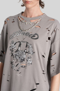 DISTRESSED CRYSTAL EMBELLISHED GRAPHIC T-SHIRT