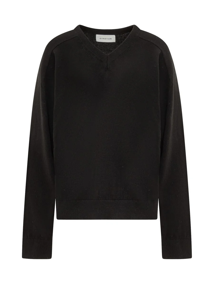V-neck sweater. Long sleeves. Ribbed collar, cuffs and bottom. Gender: Women Material: 100% CASHMERE RECYCLED Color: Black Made in: Italy Product ID: ARMTMKN02WS01 002 *Import tax/duty will be calculated at checkout (If applicable)