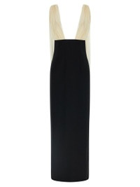 Long 'Mara' dress in stretch virgin wool of medium weight, V-neck in silk georgette that continues on the back creating a shawl pattern, inner triangle tulle bra, sleeveless, tube skirt, zip closure and back split Gender: Women Material: 95% VIRGIN WOOL 4% ELASTANE 1% POLYAMIDE Color: Multicolor Made in: Italy Product ID: ARMTMD029W020002BLACK *Import tax/duty will be calculated at checkout (If applicable)