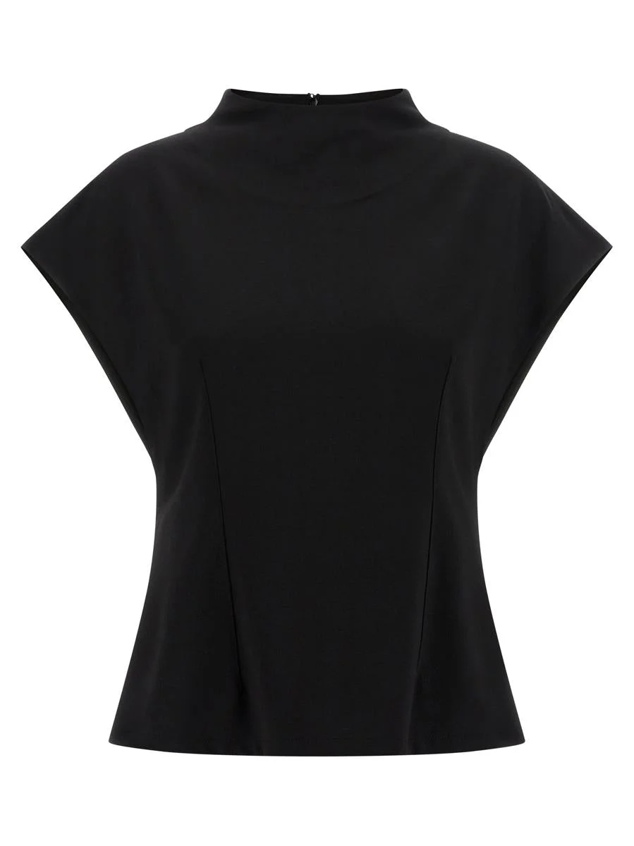 'Sia' viscose blend top with flared silhouette, round neckline, back zip closure, short sleeves Gender: Women Material: 50% VISCOSE 50% NYLON Color: Black Made in: Portugal Product ID: ARMTMT028V008002BLACK *Import tax/duty will be calculated at checkout (If applicable)