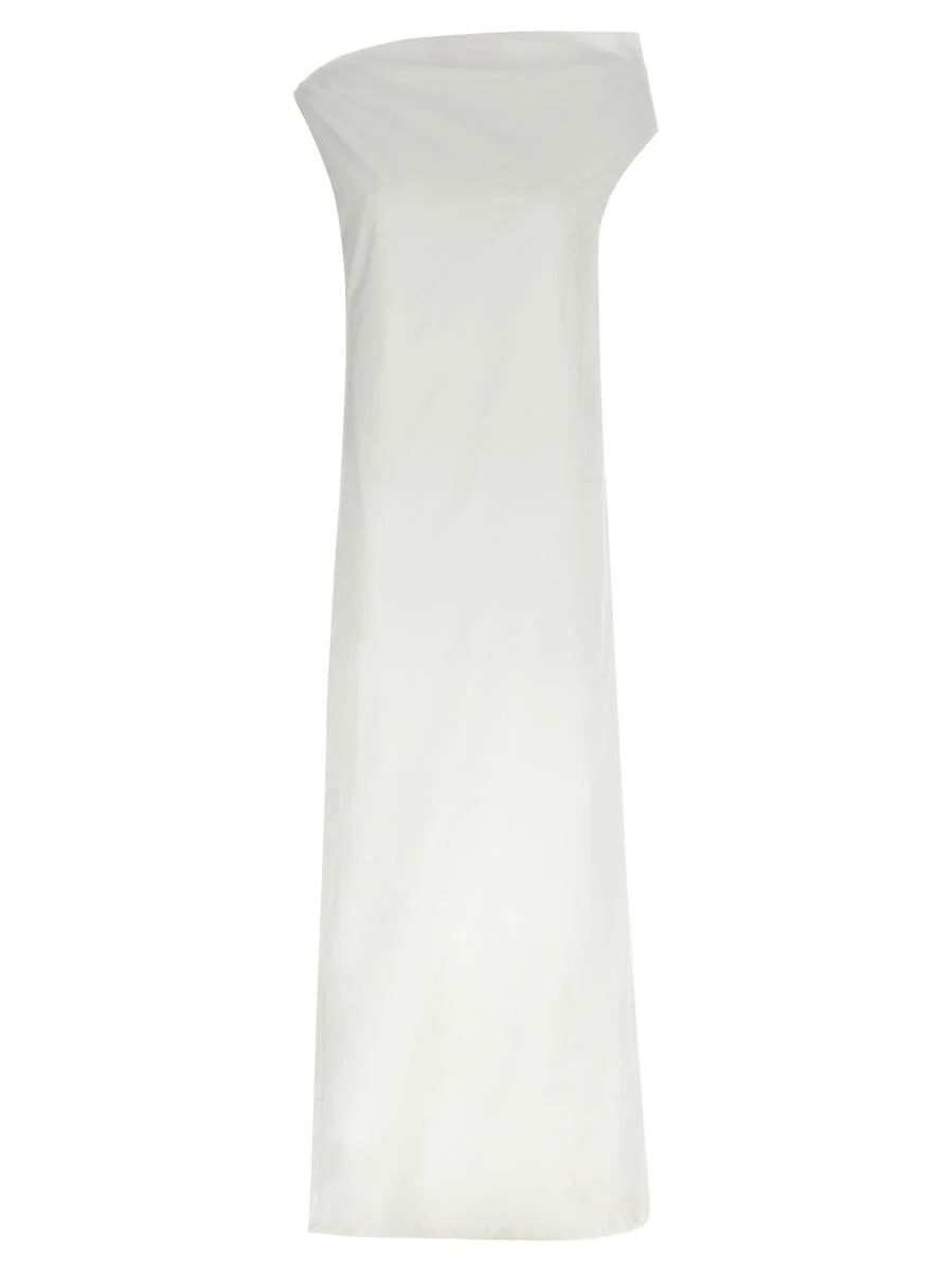 Long 'Tiche' dress in stretch cotton poplin with one shoulder style with draping, asymmetric boat neck, straight silhouette, back slit Gender: Women Material: 56% COTTON, 44% EME Color: WHITE Made in: Italy Product ID: ARMTMD025C010001 *Import tax/duty will be calculated at checkout (If applicable)