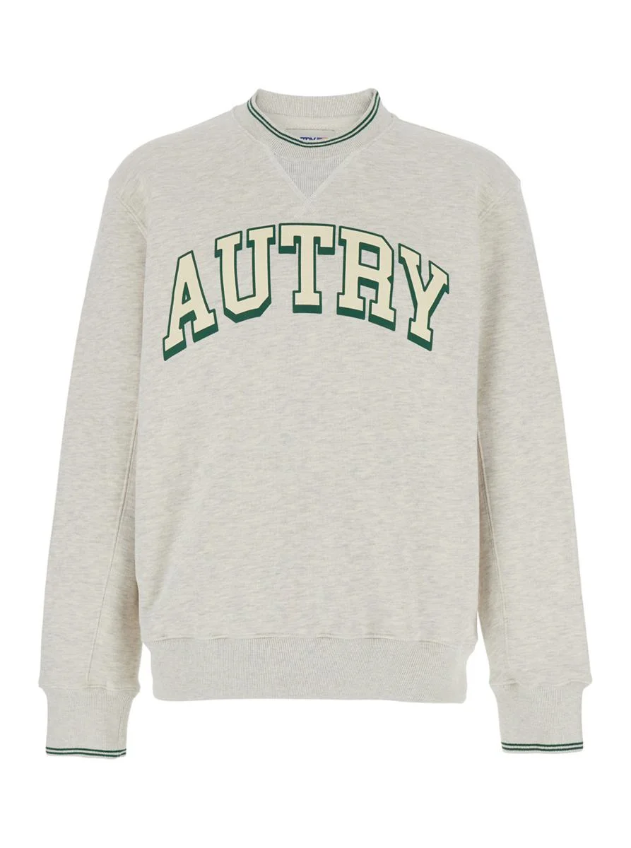 Autry Grey Crewneck Sweatshirt With Logo Print In Jersey Man