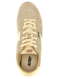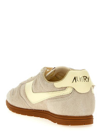 Grey Windspin sneakers from Autry featuring round toe, cotton laces. lateral logo patch and leather sole. Size Type: Shoes Man IT Gender: Men Material: COVER 100%LE SOLE 100%ELASTANE Color: WIFE Made in: ID Product ID: WSLMUB01 *Import tax/duty will be calculated at checkout (If applicable)