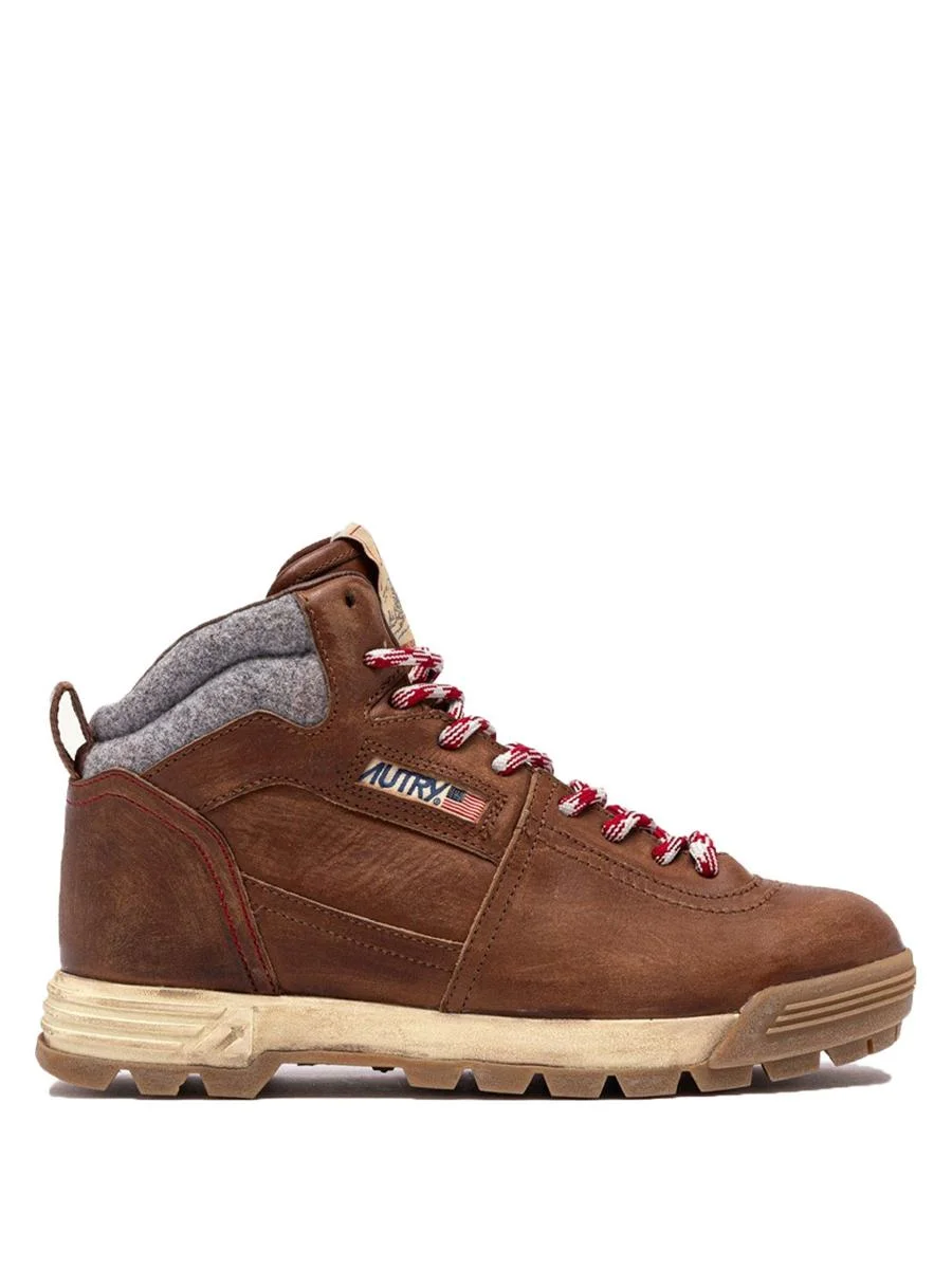 Autry Malga Pedula Hiking Boots In Natural Leather And Grey Fabric Shoes