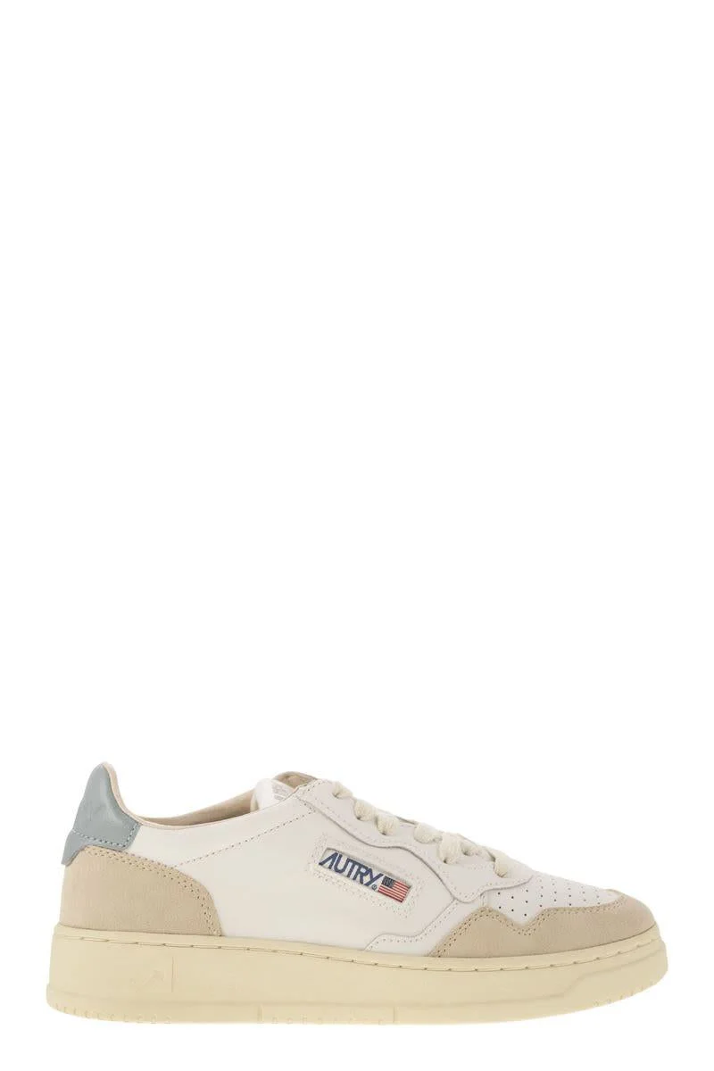 MEDALIST LOW SNEAKERS IN WHITE AND SILVER BLUE LEATHER SUEDE
