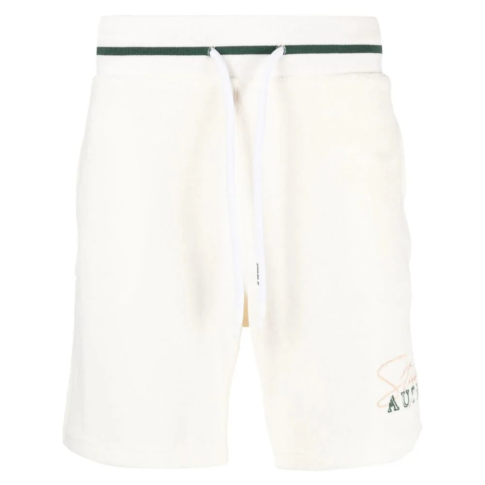 Cream white cotton blend jersey fleece stripe detailing embroidered logo at the leg elasticated drawstring waistband two side inset pockets rear welt pocket thigh-length when buying this unisex item, keep in mind that it is graded in standard men's sizing. Gender: Men Material: COTTON: 80.0%, POLYESTER: 20.0% Color: WHITE Made in: TR Product ID: SHJU 2751 *Import tax/duty will be calculated at checkout (If applicable)