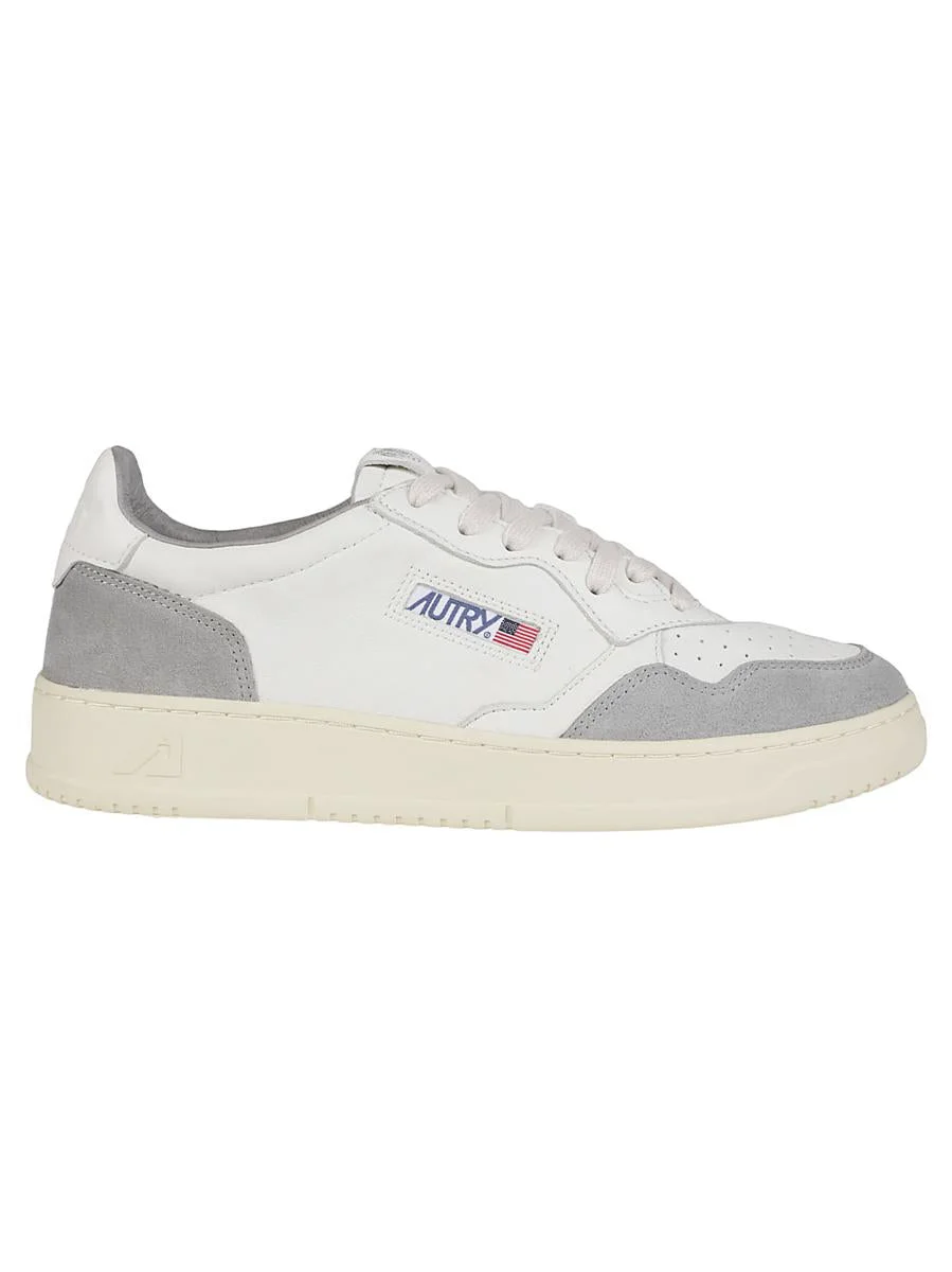 MEDALIST LOW SNEAKERS IN WHITE AND GRAY LEATHER SUEDE