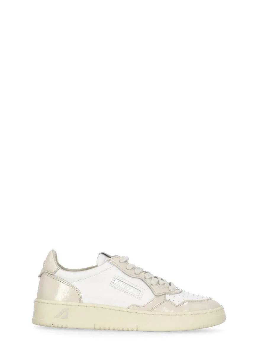 - White Autry leather sneakers for woman - Round toe with breathable details - Front laces fastening - Tongue with contrasting color embroidered logo - Side contrasting color logo - Contrasting color upper heel with imprinted logo - Contrasting color patent leather inserts - Rubber sole Shoe runs true to size Gender: Women Material: 100% COW LEATHER SOLE: 100% RUBBER Color: WHITE Made in: Imported Product ID: AULWRT03WHT/ROSE *Import tax/duty will be calculated at checkout (If applicable)