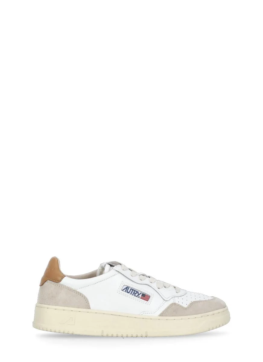MEDALIST LOW SNEAKERS IN WHITE AND SANDSTORM LEATHER SUEDE