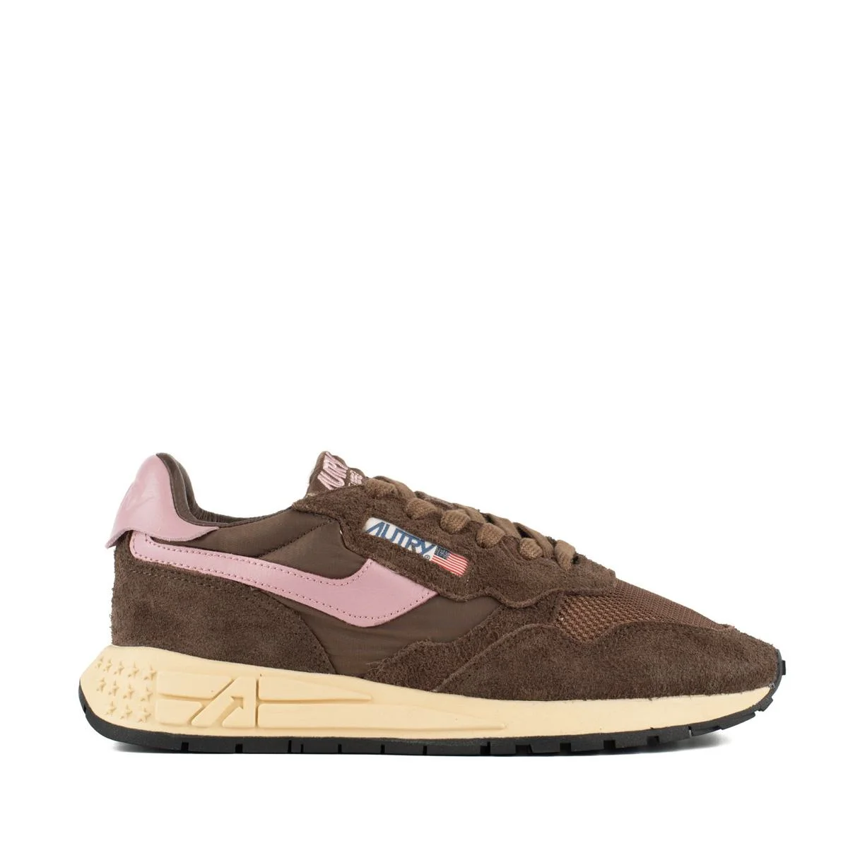 Color Item: Brown | Sporty performance and metropolitan lifestyle | The Reelwind sneaker offers the technical edge of a sporty performance model and the signature style of the Autry aesthetic | This women's sneaker is made of brown nylon and is reinforced with tonal suede and pink leather inserts that create a dynamic design | Lightweight and streamlined, it is complemented by a mesh toe and a rubber and Phylon running sole that cushions impact on the road or field | Details on the tongue on the outer side and heel are customized with the Autry logo that give a touch of authenticity for a contemporary everyday aesthetic | Suede, nylon, leather and mesh upper | Mesh toe | Cotton flat laces | Embroidery label stitched on tongue | Padded collar | Leather, terry and nylon lining | Leather insole raised 2 cm | Rubber outsole | Sole height: 2.5-3.5 cm | Custom fabric pouch | Upper: 20% Cracked Leather, 35% Suede, 45% Nylon | Lining: 40% Leather, 50% Cotton Sponge, 10% Nylon | Outsole: 60% Phylon, 40% Rubber Gender: Women Material: LEATHER Color: BROWN Made in: Imported Product ID: WWLW UT12 *Import tax/duty will be calculated at checkout (If applicable)