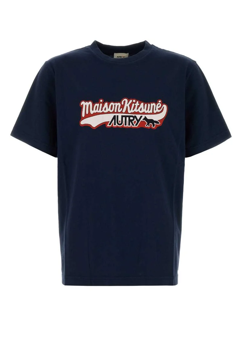 Navy blue cotton Autry x Maison KitsunA© t-shirt Gender: Men Material: 100% COTTON Color: BLUE Made in: Italy Product ID: TSPX MK2B *Import tax/duty will be calculated at checkout (If applicable)