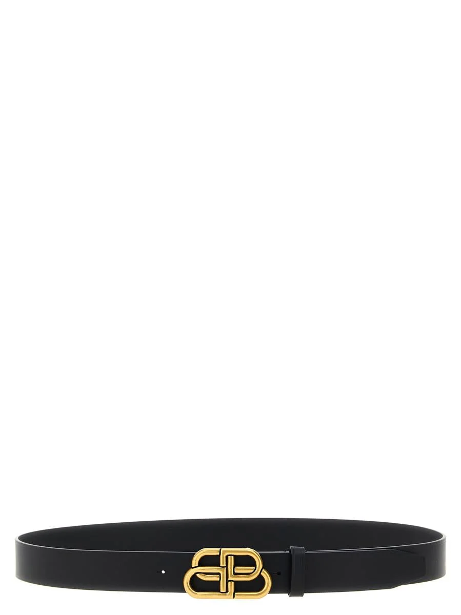 BALENCIAGA BLACK BELT WITH INTERLOCKED BB LOGO BUCKLE IN SMOOTH LEATHER MAN
