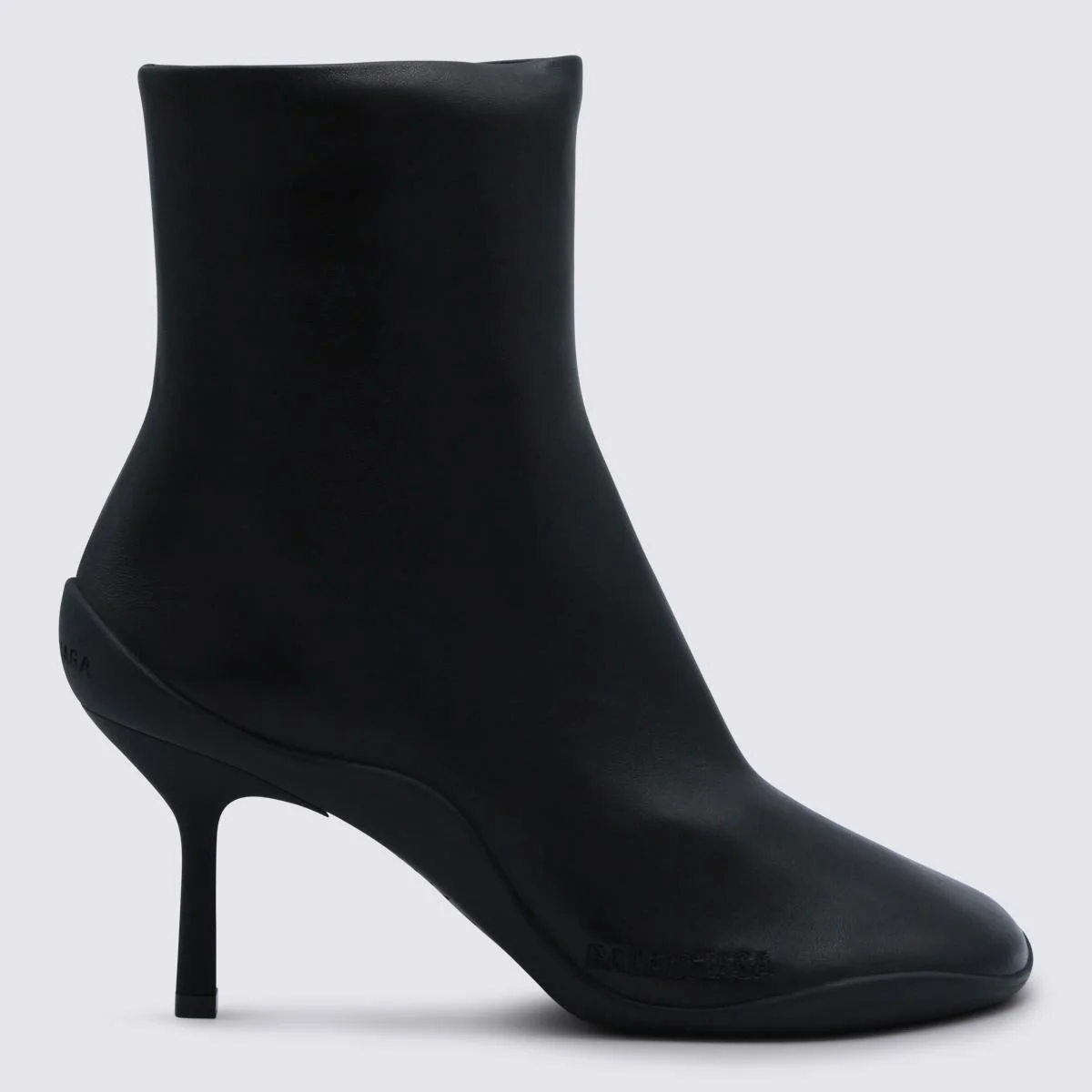 Black leather Shibuya boots from Balenciaga featuring round toe, tone on tone logo, internal zip fastening and mid stiletto heel. Size Type: Shoes Woman IT Gender: Women Material: COVER 100%LE SOLE 100% ELASTANE Color: Black Made in: Italy Product ID: 845468WBCW01000 *Import tax/duty will be calculated at checkout (If applicable)