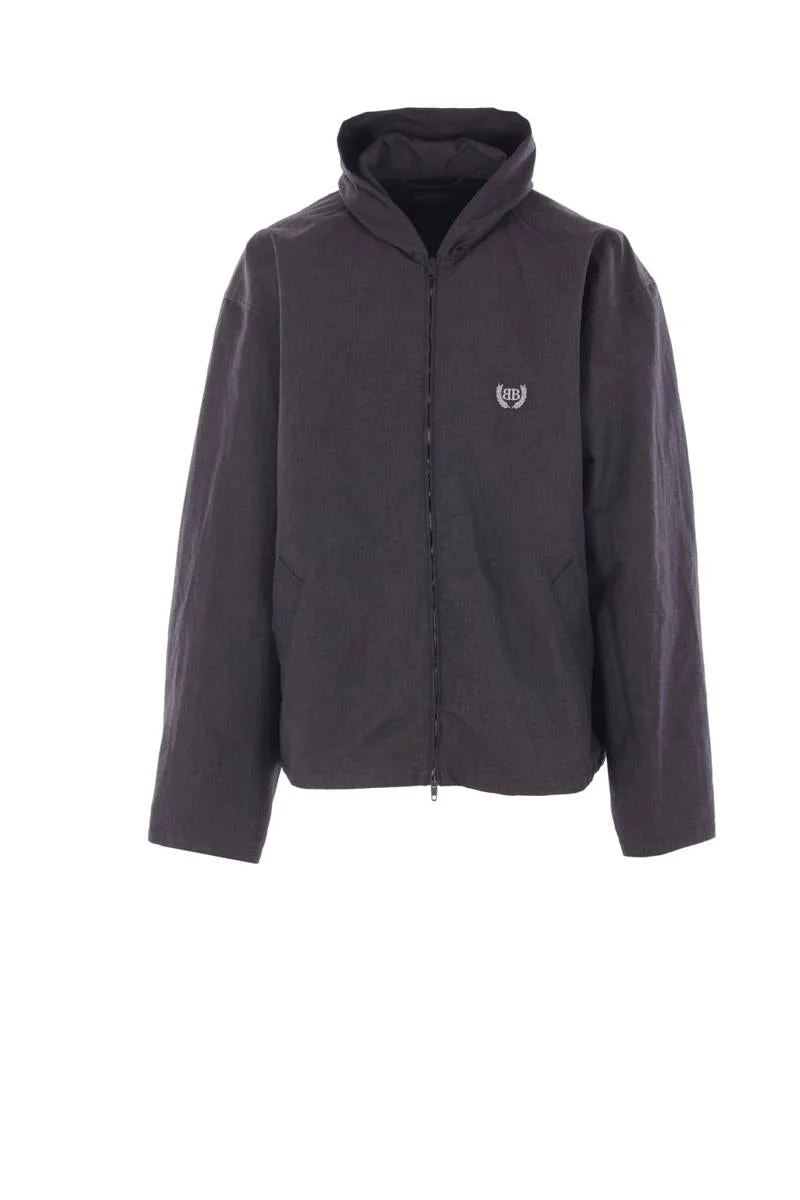 Balenciaga oversized jacket crafted from black linen and cotton chambray with a classic laurel motif embroidered on the chest. Featuring a classic hood, front zip closure, welt pockets, long sleeves, and a straight hem. Lined interior. Gender: Men Material: LINEN 58% COTTON 42% Color: Black Made in: Italy Product ID: 831341TST051000 *Import tax/duty will be calculated at checkout (If applicable)