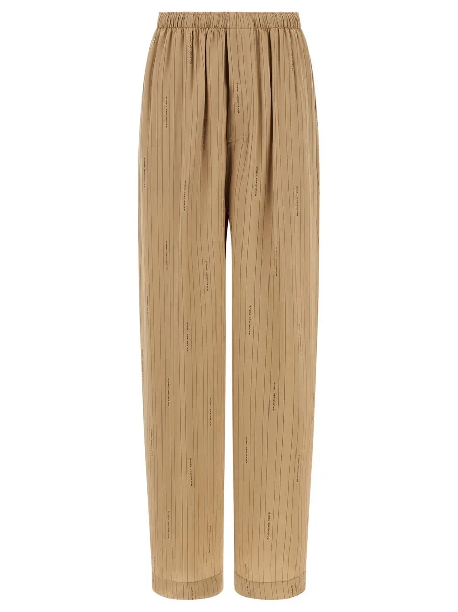 'Coocon' striped fluid viscose pants with all-over 'Balenciaga Tissus' logo, wide leg, adjustable drawstring elastic at the waist, button flap, pockets Gender: Women Material: 100% VISCOSE Color: Beige Made in: Portugal Product ID: 847154TSLA62684 *Import tax/duty will be calculated at checkout (If applicable)