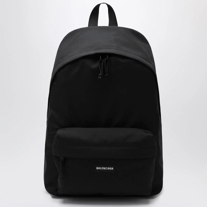 Balenciaga backpack in black nylon blend, featuring a top handle, adjustable padded shoulder straps, zip closure, a front zip pocket with logo lettering patch, an internal zip pocket, a flat internal pocket, and cotton canvas lining. Gender: Men Material: 50% Polyamide - 50% Polyester Color: Black Made in: Italy Product ID: 5032212VZ37/R_BALEN-1000 *Import tax/duty will be calculated at checkout (If applicable)