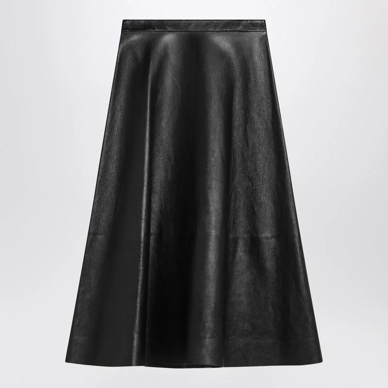 Balenciaga black leather skirt, characterized by flared design, high waist and side zip closure. Gender: Women Material: 100% Lambskin Color: Black Made in: IT Product ID: 816648TRS12/Q_BALEN-1000 *Import tax/duty will be calculated at checkout (If applicable)