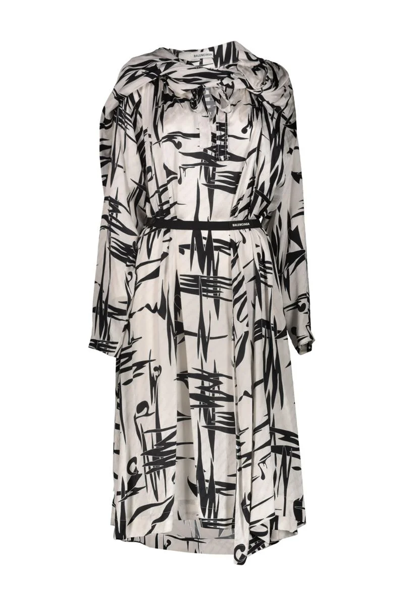 Balenciaga jacquard silk dress with abstract design print, applied elastic waistband Gender: Women Material: SILK | 100% SILK Color: WHITE Made in: ITALY|IT Product ID: 528542TBL22 *Import tax/duty will be calculated at checkout (If applicable)