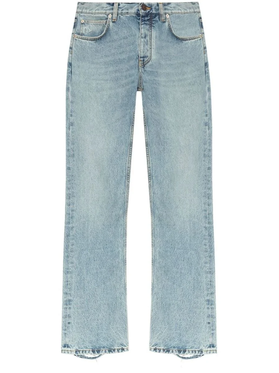 Balenciaga's low-waist straight jeans in light blue organic Japanese twill. Featuring metal buttons clsoure, belt loops, five classic pockets and frayed hem at the bottom. Gender: WOMEN Material: T COTTON 100%;FP POLYESTER 65%:FP COTTON 35% Color: BLUE Made in: IT Product ID: 794047TDW144141 *Import tax/duty will be calculated at checkout (If applicable)