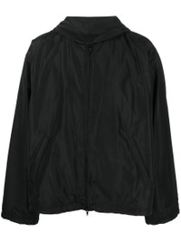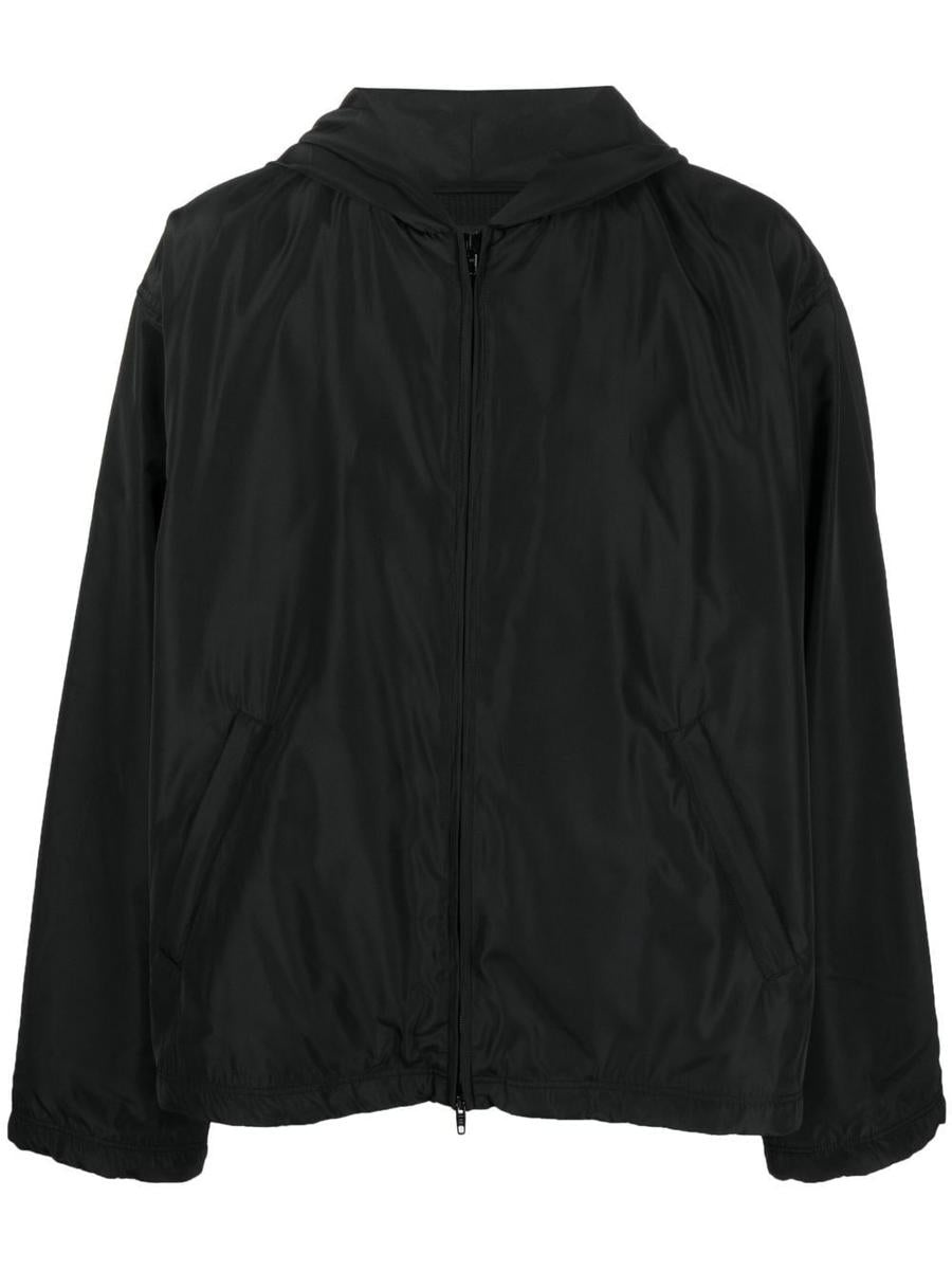 logo-print hooded windbreaker from BALENCIAGA featuring black/white, lightweight construction, logo print to the rear, classic hood, front two-way zip fastening, drop shoulder, long wide sleeves, drawstring cuffs, internal zip-fastening pockets, two side zip-fastening pockets, drawstring hem and mesh lining. This piece fits true to size. We recommend you get your regular size Model is 1,75m / 5ft 8in wearing size 1 (NUM) Gender: Women Material: MAIN MATERIAL: 53% POLYESTER 47% VISCOSE; LINING: 100% POLYESTER Color: BLACK Made in: IT Product ID: 725275TYD361000 *Import tax/duty will be calculated at checkout (If applicable)