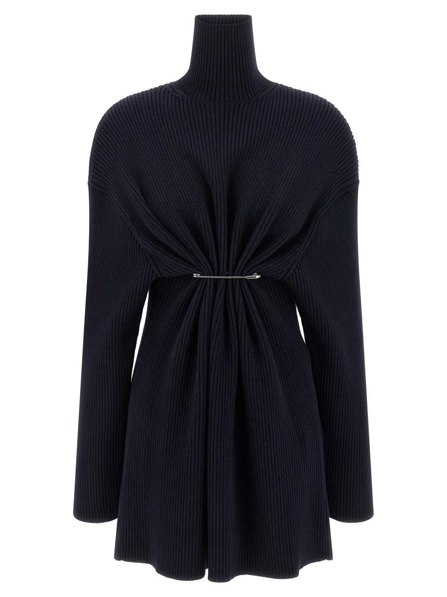 'Pinched' ribbed knit mini dress, high neck with maxi front safety pin detail, long sleeves Gender: Women Material: 100% WOOL Color: BLUE Made in: Italy Product ID: 850028T17594140 *Import tax/duty will be calculated at checkout (If applicable)