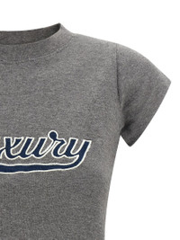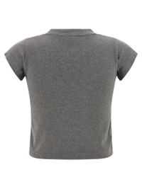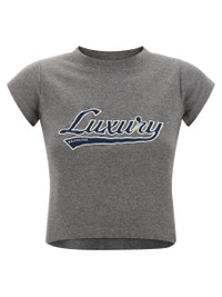 Stretch jersey interlock melange cotton T-shirt with front 'Shrunk Luxury Script' embroidery, crop style, crew neck, short sleeves Gender: Women Material: 100% COTTON Color: GRAY Made in: Portugal Product ID: 807341TTVB81035 *Import tax/duty will be calculated at checkout (If applicable)