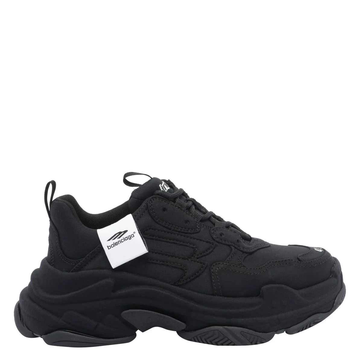 Balenciaga Black Triple S Sneakers, Round Toe, Laces Closure, Lateral Band Logo, EU SIZE (IT) Gender: Men Material: 100% FABRIC/RUBBER SOLE Color: Black Made in: Imported Product ID: 820240WTSJG1000 *Import tax/duty will be calculated at checkout (If applicable)