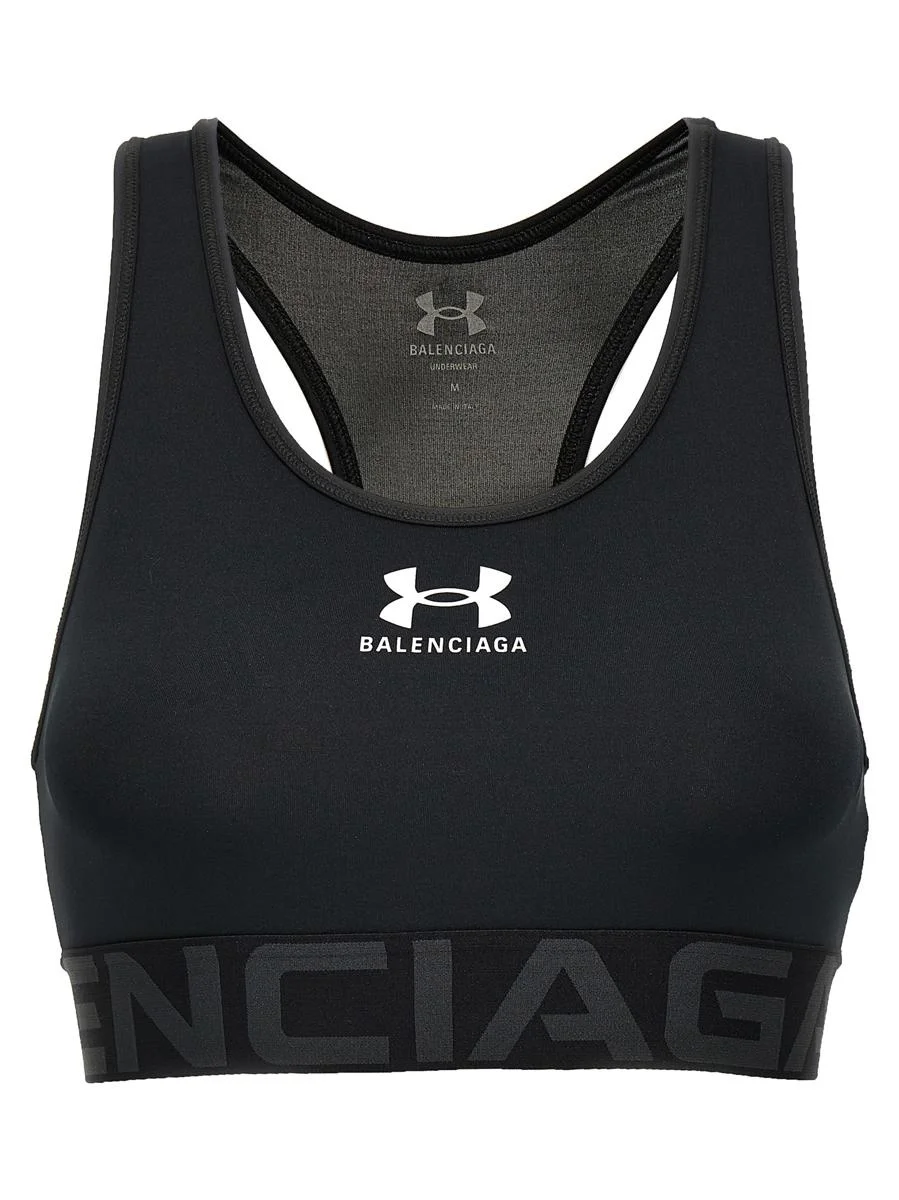 Top x 'Under Armour®', sporty model in stretch technical jersey, front logo print, logo elastic on the hem Gender: Women Material: 85% POLYESTER, 15% ELASTANE Color: Black Made in: IT Product ID: 8142974E9B31062 *Import tax/duty will be calculated at checkout (If applicable)
