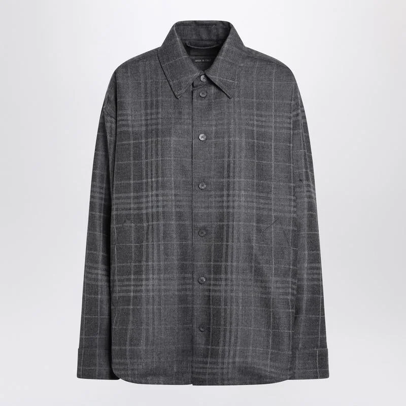 Gray wool tartan Balenciaga shirt jacket, featuring a front button closure, long sleeves with buttoned cuffs, a curved hem, two side pockets, and a loose fit. Gender: Women Material: Fabric I: 100% wool / Lining: 100% Cupro / Pocket lining: 100% Cotton / Embroidery: 100% Polyester Color: GREY Made in: Italy Product ID: 850866TQT01/R_BALEN-1240 *Import tax/duty will be calculated at checkout (If applicable)