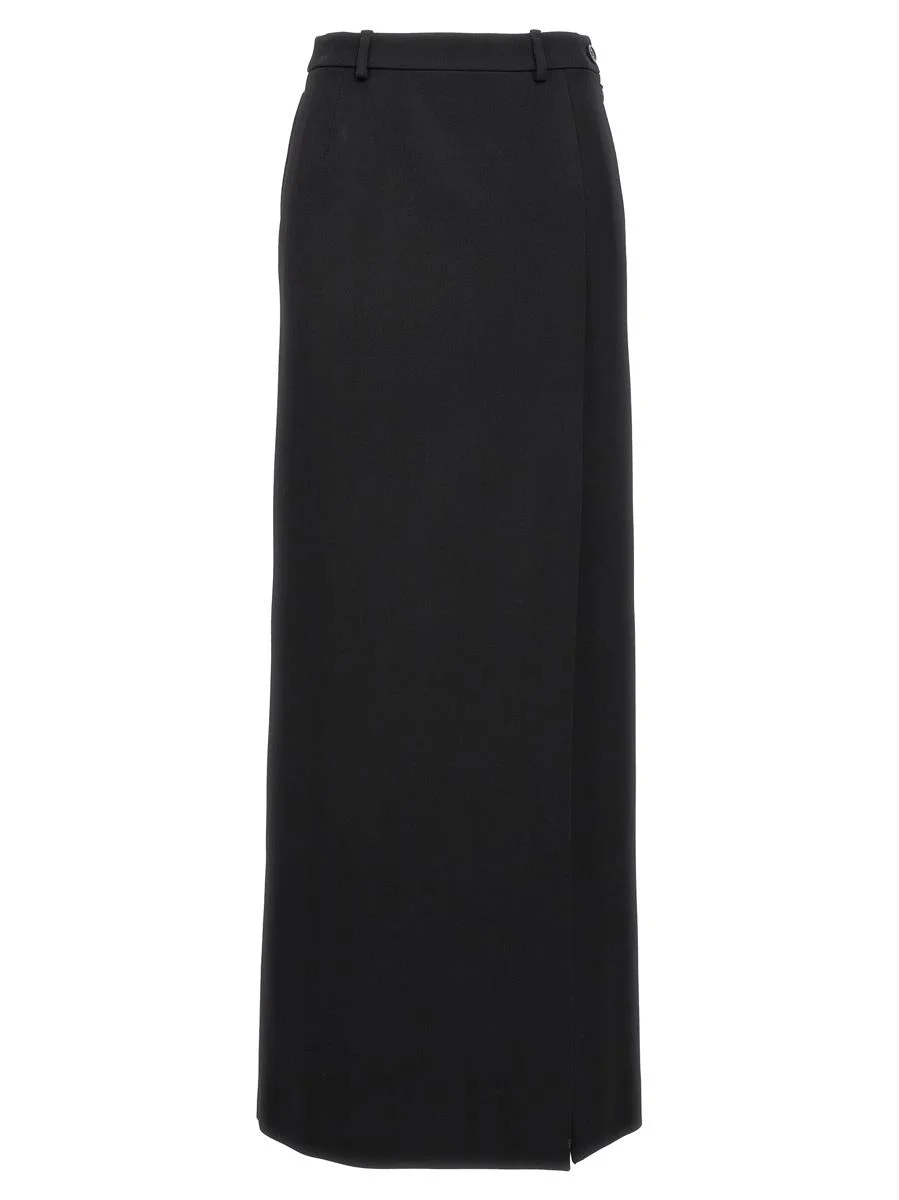 black high-waisted belt loops concealed side zip fastening tailored cut floor-length side slit This piece fits true to size. We recommend you get your regular size Model is 1,75m / 5ft 8in wearing size 36 (FR) Gender: Women Material: 100% VIRGIN WOOL Color: BLACK Made in: IT Product ID: 773547TPT241000 *Import tax/duty will be calculated at checkout (If applicable)