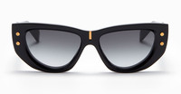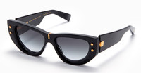 B-MUSE - BLACK / GOLD Balmain B-MUSE - BLACK / GOLD (BPS-151A-55) are elegant feminine sunglasses made in Japan. They feature black scuplted Japanese acetate frame with subtle cat-eye shape, signature front pins, bridge metal detail, floating hinge, Balmain logo on temples, and gradient grey lens with 100% UV protection. Made in Japan - Color : black - Material : acetate - Lens : gradient grey - Shape : cat-eye - Size : eye 55mm / bridge 16mm / temple 145mm Gender: Women Material: ACETATE Color: Black Made in: JP Product ID: BPS-151A-55 *Import tax/duty will be calculated at checkout (If applicable) WARNING CALIFORNIA PROPOSITION 65 This product can expose you to chemicals including Nickel (Metallic), which is known to the State of California to cause cancer. For more information go to https://p65warnings.ca.gov California Health & Safety Code Section 25249.6 *Shipping eyewear products to US only For US customers, eyewear products are categorized as Class 1 medical devices by the 21 Code of Federal Regulations (CFR) - Food and Drug Administration (FDA). Baltini ships eyewear orders on a Delivery Duties Paid (DDP) basis. This means that all applicable duties are included in the final price calculated at the checkout and there are no additional costs due upon delivery.