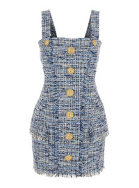 Balmain Blue Dress With Frayed Details In Tweed Woman