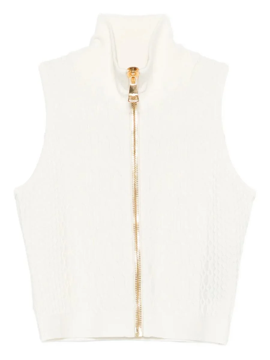High-neck zip-up top Sleeveless, white high-neck zip-front closure, gold-tone hardware Origin: Italy Care Instructions Read manufacturer`s instructions ID FF0AB203KJ03 Gender: Women Material: VISCOSE Color: Beige Made in: Imported Product ID: 96201 FF0AB203KJ03 95708 *Import tax/duty will be calculated at checkout (If applicable)