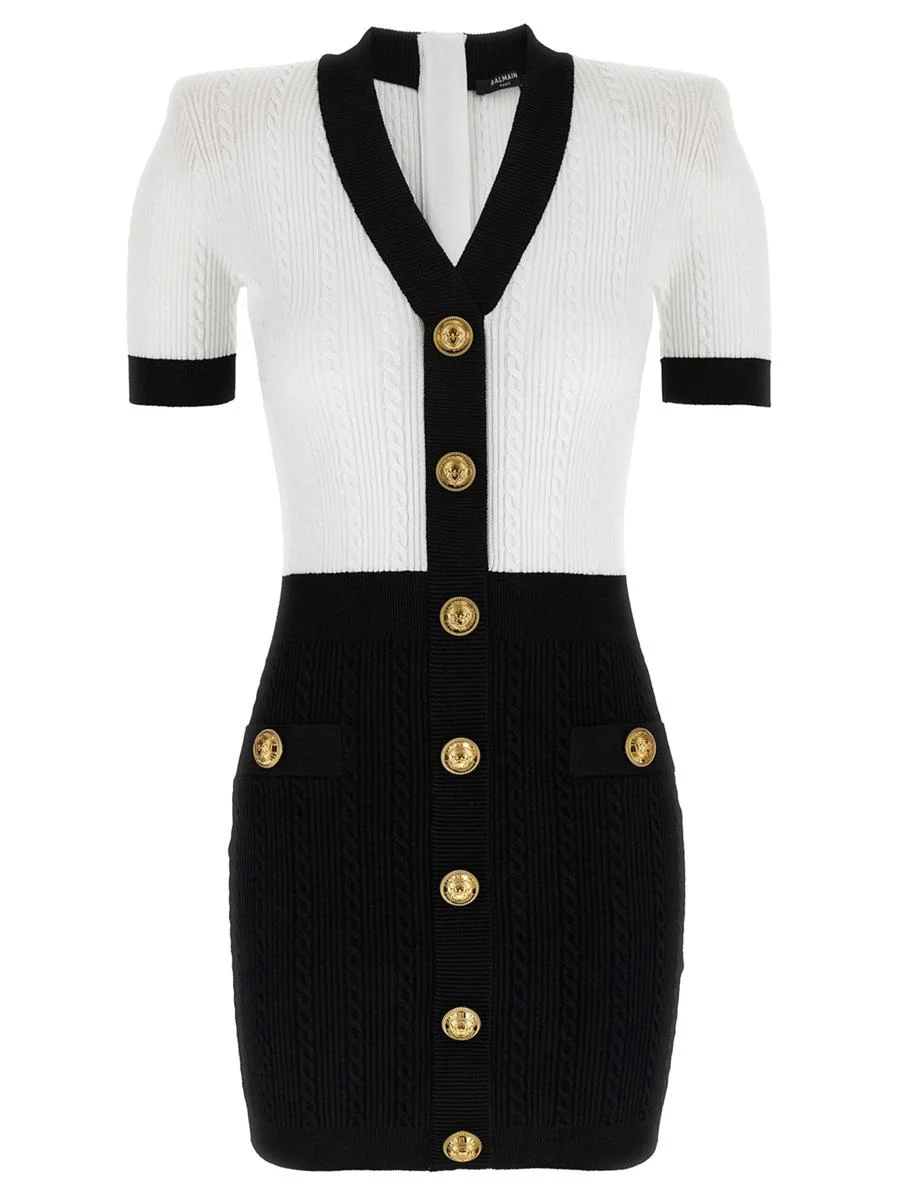 Mini knitted dress with braided knit, V-neck, front logo buttons, front pocket detail, short sleeves Gender: Women Material: 83% VISCOSE, 17% POLYESTER Color: Multicolor Made in: Imported Product ID: FF1R6033KI50EAB *Import tax/duty will be calculated at checkout (If applicable)