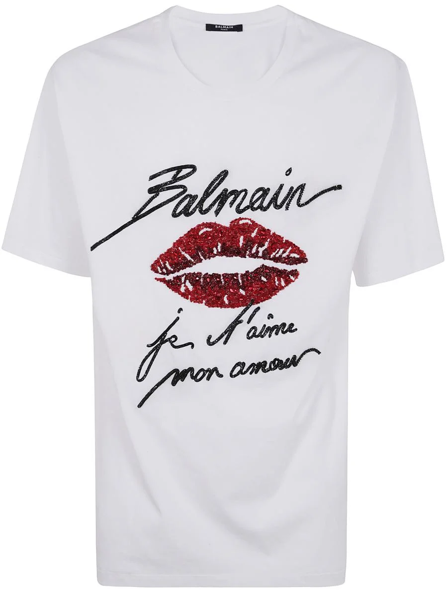 Balmain & Lips Embroid T-Shirt - Reg Fit Clothing